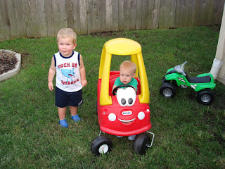 Oh and to Colby's sleep habits! Things have improved greatly! He has been taking naps every day! I pretty much have to go in there and sit until he falls asleep though he has napped 1 day without me doing that. Sometimes I just have to go in there for 5 minutes and the other times I am there for up to 2 hours until he falls asleep! I think its the right decision though for now I feel a peace about it now. I think God answered our prayers by making me think to do this. I can tell he is catching up with his rest and not overtired and overstimulated like last week. He's also doing fine at night. We have had a couple times of him getting up crying but we don't turn his music back on and so I think he is learning that sleep time is serious. His wake up time has been from 6:30-7:30 most days. Most days now he comes and gets in the bed with me after Austin leaves for work which is fine. I also don't have a problem with him waking up especially when Austin is already up I can't help he hears his daddy getting ready it wakes me too most mornings!